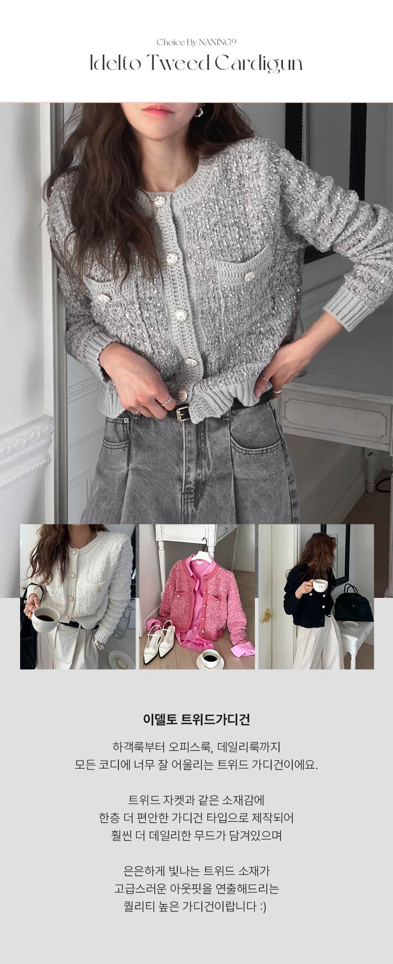 홈 / 아우터 / 25090236 라운드 트위드 가디건 25090236 라운드 트위드 가디건 Published on: 2025년 9월 19일 컬러 옵션을 선택하세요아이보리(乳白色)그레이(灰色)블랙(黑色)핑크(玫红色)베이지(卡其色) 사이즈 옵션을 선택하세요F클리어 25090236 라운드 트위드 가디건 수량 장바구니 위시리스트 추가 설명 추가 정보 설명 추가 정보 컬러 아이보리(乳白色), 그레이(灰色), 블랙(黑色), 핑크(玫红色), 베이지(卡其色) 사이즈 F 연관 상품 원피스 23030521 노슬리브 언발 니트원피스 상의 23020089 퍼프 트임 블라우스 상의 24010068 실사 밍크니트 상의 24010040 실사 배색 큐빅티셔츠