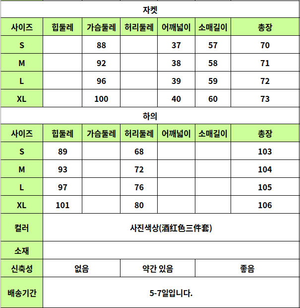 홈 / 세트 / 25110056 정장 쓰리피스 25110056 정장 쓰리피스 Published on: 2025년 11월 5일 컬러 옵션을 선택하세요사진색상(酒红色三件套) 사이즈 옵션을 선택하세요SMLXL클리어 25110056 정장 쓰리피스 수량 장바구니 위시리스트 추가 설명 추가 정보 설명 추가 정보 컬러 사진색상(酒红色三件套) 사이즈 S, M, L, XL 연관 상품 세트 23020135 실사 빅사이즈 체인 데님배색 트레이닝투피스 세트 23060141 실사 모노체크투피스 반팔자켓 미니스커트 세트 24020092 실사 반팔티+스커트+핫팬츠+벨트 세트 세트 23120168 실사 패딩 트레이닝 투피스