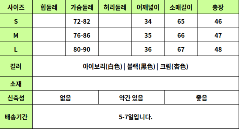 홈 / 상의 / 26030202 프렌치 V넥 레이스 퍼프 블라우스 슬림핏 이너탑 26030202 프렌치 V넥 레이스 퍼프 블라우스 슬림핏 이너탑 Published on: 2026년 3월 17일 컬러 옵션을 선택하세요아이보리(白色)블랙(黑色)크림(杏色) 사이즈 옵션을 선택하세요SML클리어 26030202 프렌치 V넥 레이스 퍼프 블라우스 슬림핏 이너탑 수량 장바구니 위시리스트 추가 설명 추가 정보 설명 추가 정보 컬러 아이보리(白色), 블랙(黑色), 크림(杏色) 사이즈 S, M, L 연관 상품 상의 24020038 실사 블링블링 블라우스 상의 24010095 럭셔리 레이스 프릴 블라우스 상의 24010084 럭셔리 언발셔링티 상의 21100922 데일리 터틀넥 머플러 니트