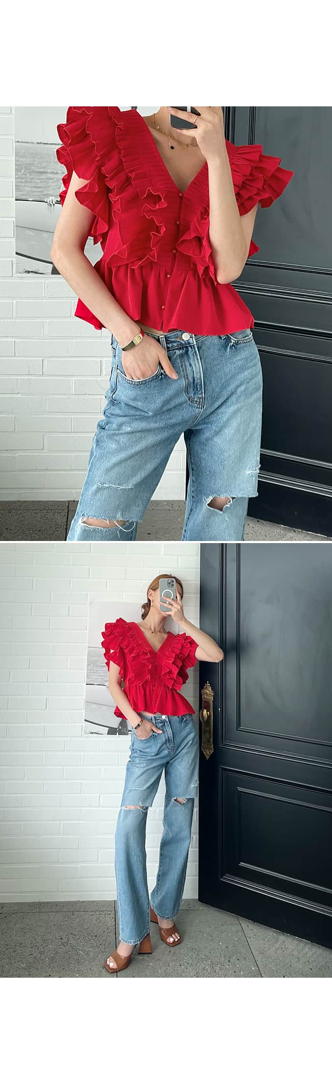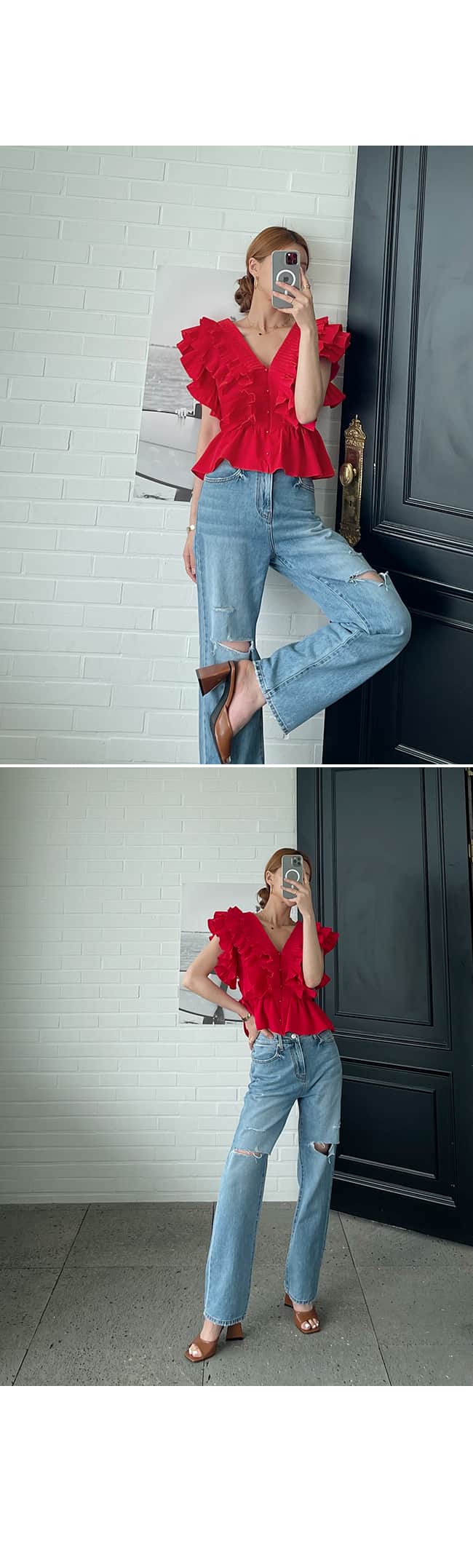 홈 / 상의 / 26040199 프렌치 무드 V넥 핀턱 프릴 디테일 반팔 셔츠 블라우스 26040199 프렌치 무드 V넥 핀턱 프릴 디테일 반팔 셔츠 블라우스 Published on: 2026년 4월 16일 컬러 옵션을 선택하세요블랙(黑色)아이보리(白色)레드(红色) 사이즈 옵션을 선택하세요F클리어 26040199 프렌치 무드 V넥 핀턱 프릴 디테일 반팔 셔츠 블라우스 수량 장바구니 위시리스트 추가 설명 추가 정보 설명 추가 정보 컬러 블랙(黑色), 아이보리(白色), 레드(红色) 사이즈 F 연관 상품 상의 24010032 실사 곰돌이 니트 상의 23090123 실사 페이크투피스 프린트 상의 24020090 실사 오프숄더 레터링 티셔츠 상의 24020035 실사 어깨트임 큐빅 나비티셔츠